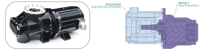 永磁電機采用高效能釹磁體,1200C不失磁,空壓機使用壽命更長。